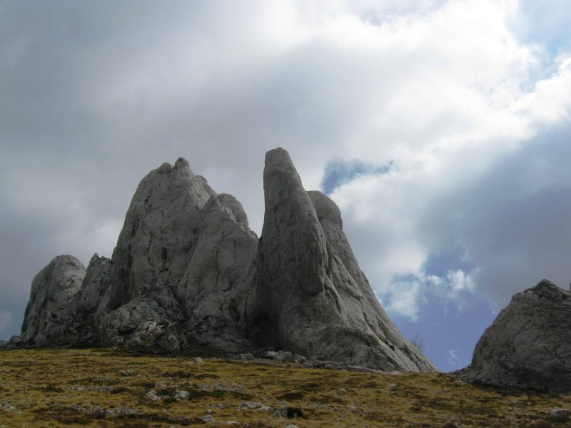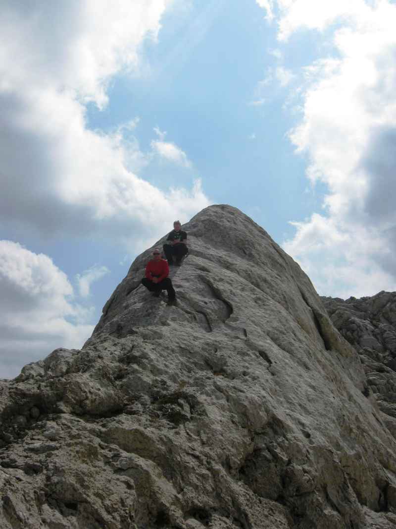 U nastavku uspona prolazi se pored stjenovitog i rastrganog obeliska zvanog “katedrala”, odakle strmije do dvije zaravni okružene kamenitim, glatkim, gromadama. U završnici uspona 27-ero učesnika izleta popeli su se pod tri stjenovite glavice vrha (trovrh), do prijevoja. Do zapadne glavice (vidikovac s metalnom zastavom), po krševitom i teškom terenu,preko ponikve, popelo se samo nekolicina mlađih i spretnih učsnika izleta, vični penjanju.